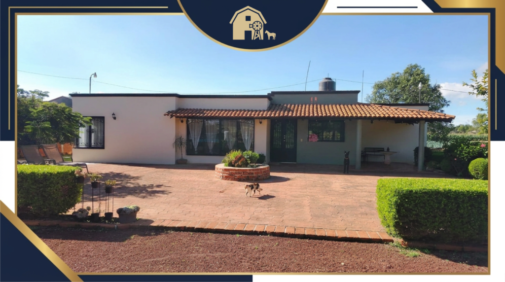 RANCHO 4.5 ECTÁREAS, ARANDAS Arandas,Jalisco. DESCRIPCION: Excelente oportunidad de Inversión por suubicación y características únicas. Cuenta con dos escrituras. Escritura (1): 24,161.00 m2. Escritura (2): 20,949.00 m2. Superficie Total: 45,110 mt2 Casa de Campo: 4 recámaras, sala, comedor. Terraza independiente con cocina y bodega. Cochera techadapara3 vehículos. Amplios j ardines. Lago pequeño con peces. Agave de 2 y 4 años. Maíz de temporada. Perímetro cercado. Camino de 8mts preparado. A solo 5 minutos del centro de Arandas. Todos los servicios. Luz,Agua,Fosa. CONDICIONES ECONOMICAS: Precio de partida $42,000,000.00 negociable,podemos dar plazo o aceptar terreno a cuenta.