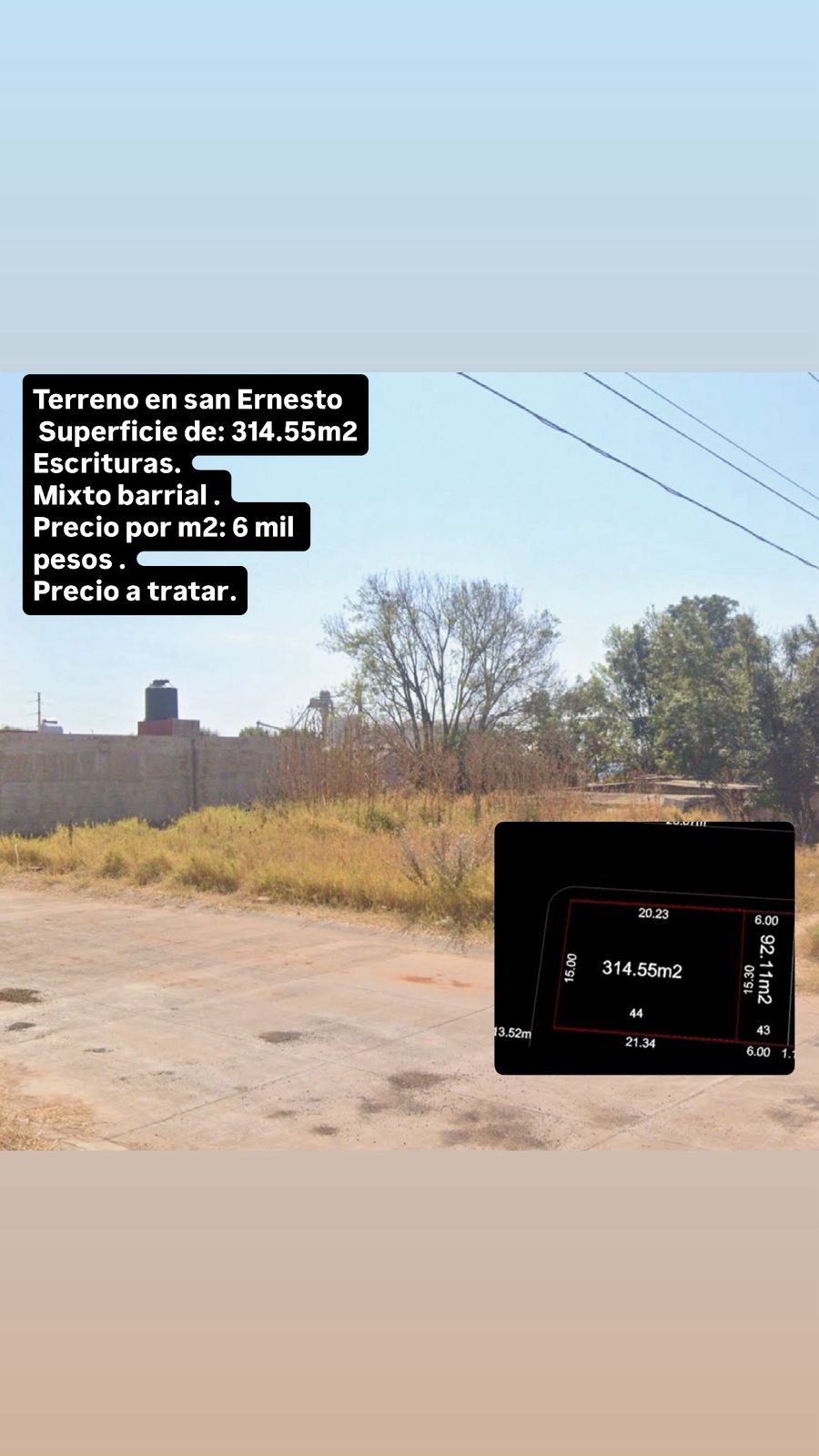 TERRENO SAN ERNESTO Esquina Santo Niño de Atochay Calzada de los Mártires,San Ernesto,Tepatitlán de Morelos,Jalisco. DESCRIPCION: Excelente ubicación en esquina, en una de lascolonias cercanas al IMSS. Terreno con alta plusvalía. Superficie: 314.55 mt2 Terreno en San Ernesto, mixto barrial. Es un terreno en esquina,calle Santo Niño de Atochay Calzada de los Mártires. Cuenta con escrituras. CONDICIONES ECONOMICAS: Precio avalúo comercial $6,000.00 m2 (Negociable),precio total del terreno$1,887,300.00